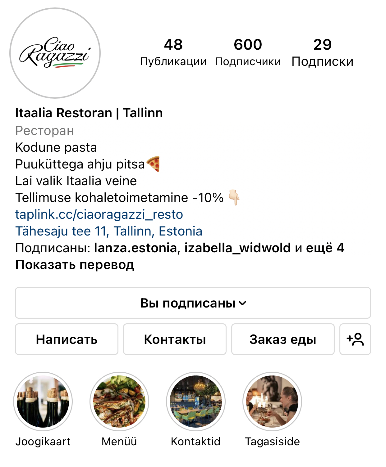 Uus Itaalia restoran võttis meiega ühendust juba stardietapis.